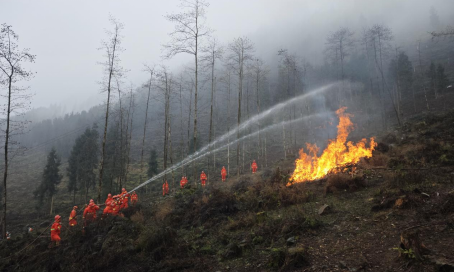 演练模拟保护区毗邻区域突发火情为背景,火场浓烟四起,火势迅速蔓延,威胁周边林区安全。护林员巡查发现火情后立即上报,村级扑火分队率先抵达现场开展初期处置。乡镇指挥部启动应急响应,调度镇村应急队伍及物资装备,同步请求县级专业支援。县专业扑火队运用风力灭火机、高压水泵等装备主攻火头,乡镇队伍配合开设隔离带、清理烟点。无人机热成像技术实时监测火情动态,为指挥决策提供精准定位。明火扑灭后,参演队伍彻底清理余烬,确认无复燃风险,移交村委会看守。