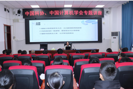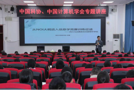 捐赠仪式后,中国计算机学会中小学计算机教育发展委员会副主席、西安交通大学附属中学金牌教练周杰,以及该委员会副主席、南京外国语学校国际金牌教练李曙,分别作《开启程序之门:计算思维方法初体验》与《从NOI大纲进入信息学竞赛训练征途》专题讲座,为师生带来前沿实用的科创指导。