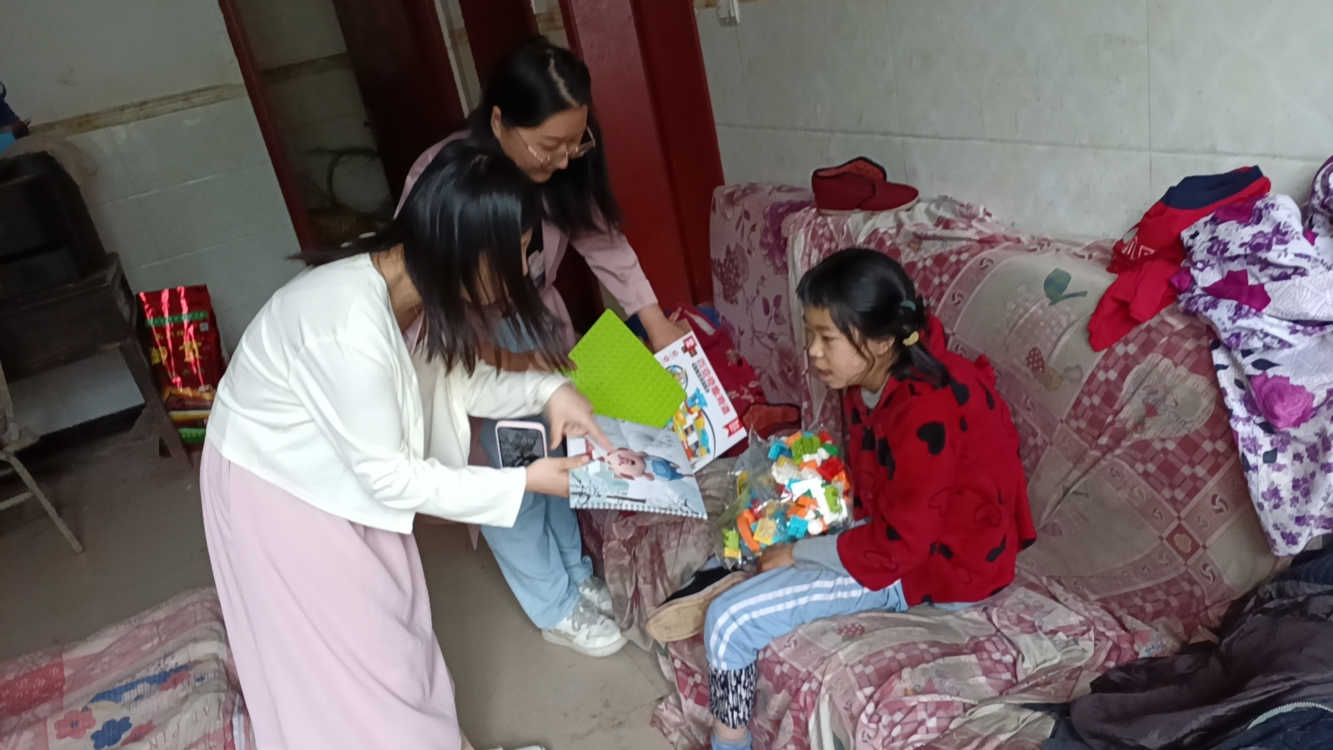 荍坝镇便民服务中心主任与困境儿童及家属亲切交谈,详细了解孩子们学习、生活状况,并为她们送上了玩具、画册等儿童节礼物,让孩子们度过一个快乐的节日。