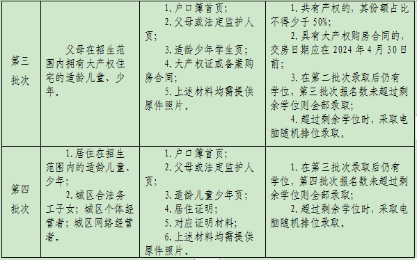 招生实行批次录取,每位适龄儿童、少年只有一次录取机会,被某一学校录取后就不再参与城区其他学校招生。未被录取的儿童、少年由教育局根据学位情况统筹安排学校就读。