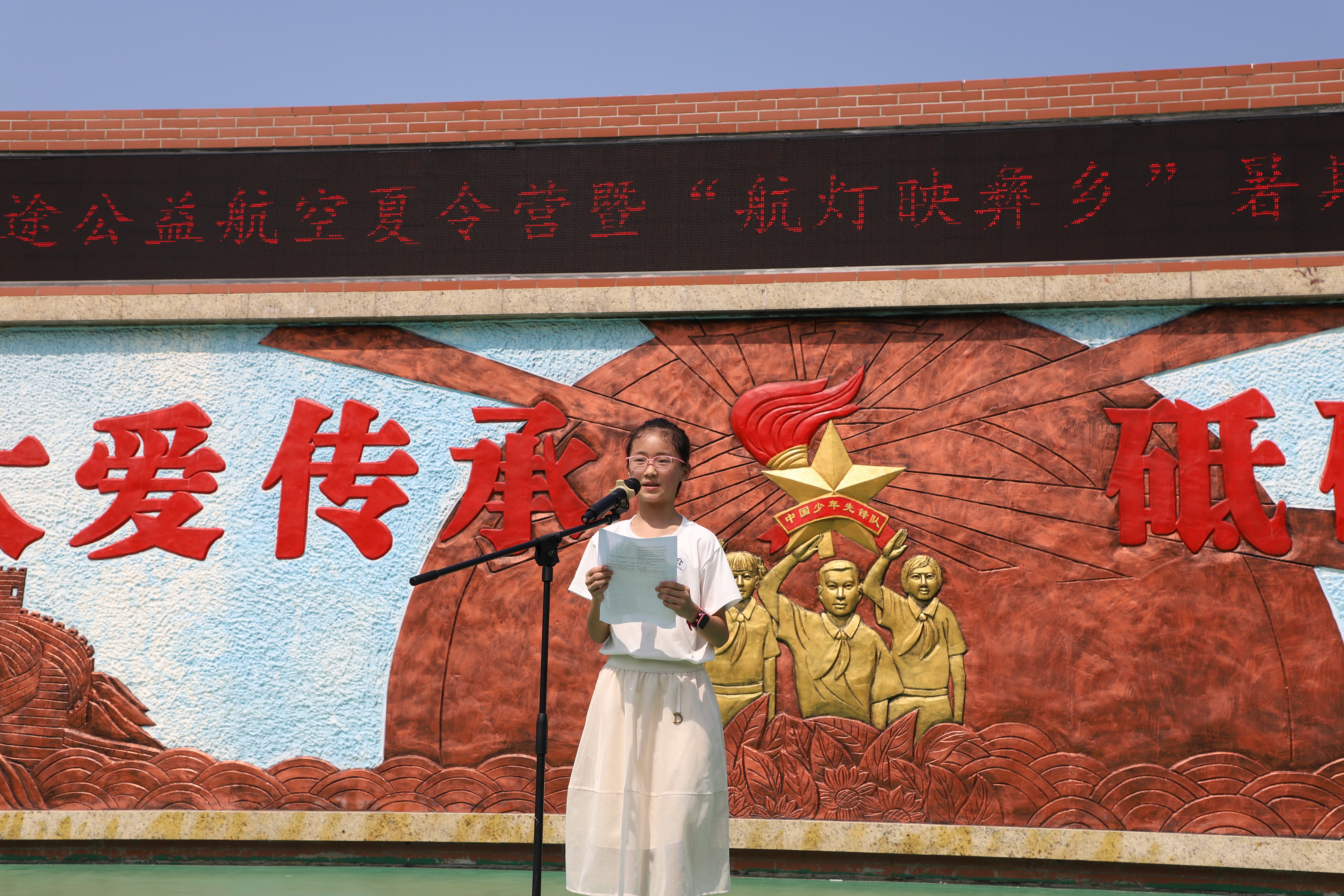 学生代表在发言中提到:在这个充满生气的夏令营课堂里,大家可以畅所欲言,一起探讨航空的知识。在志愿者哥哥姐姐们的陪伴和鼓励下,学员们一起“造”了手抛机、航模和水火箭,谢谢每一位小伙伴,谢谢哥哥姐姐们。大山挡不住梦想,十年后,希望大家能把今天的纸飞机开成真正的飞机,成为照亮家乡的航灯!