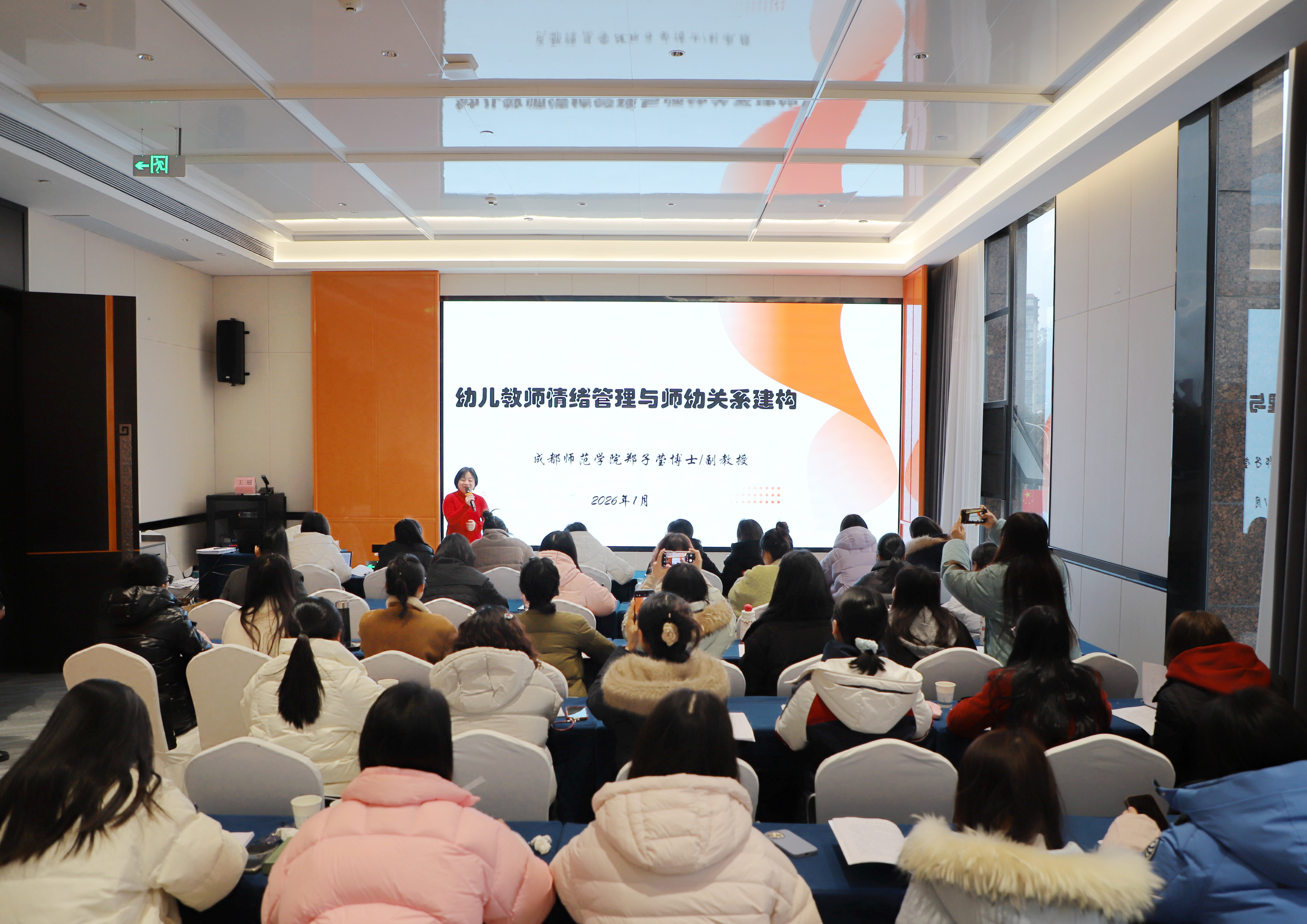 开班仪式后,成都师范学院郑子莹教授作了题为《从“心”出发,用爱守护》的专题讲座,围绕幼儿教师情绪管理与师幼关系构建进行了深入浅出的讲解,为首日培训奠定了坚实的师德与专业基础。