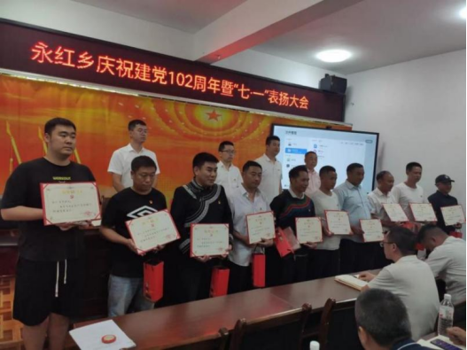 伴随着庄严肃穆的国歌声,永红乡庆祝建党102周年暨“七一”表扬大会拉开帷幕,本次大会共表扬1个先进基层党支部、10名优秀共产党员、4名优秀党务工作者。通过选树典型的方式,激励广大党员学先进、当先锋,营造比学赶超、创先争优的浓厚氛围,引导党员在工作中主动发挥先锋模范作用。