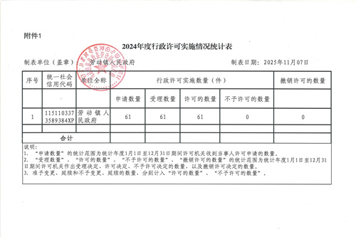 劳动镇2024行政许可、行政处罚、行政强制实施情况公示表
