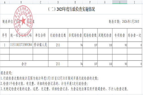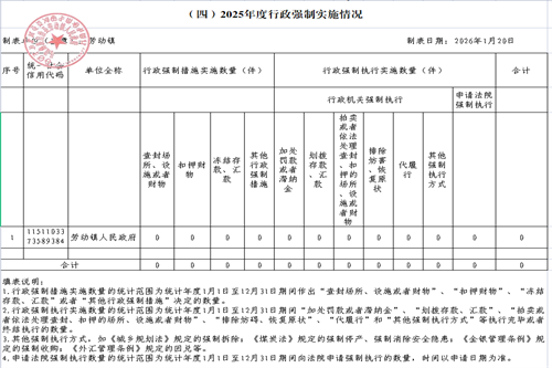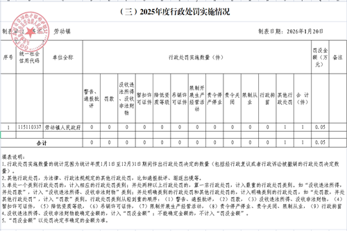 劳动镇2025行政许可、行政处罚、行政强制实施情况公示表